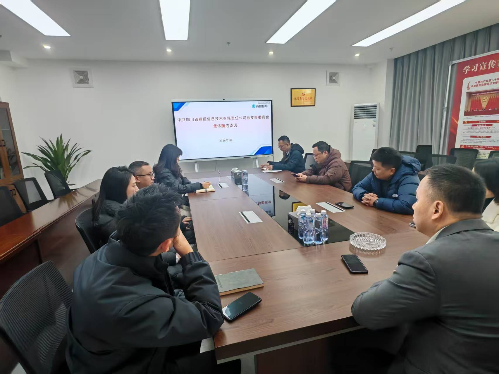1月4日,商投信息公司党总支组织召开新年廉洁从业集体谈话会,上好新年廉洁从业“第一课”。公司领导班子成员、职能部门负责人、营销负责人等通过线上及线下形式参会。