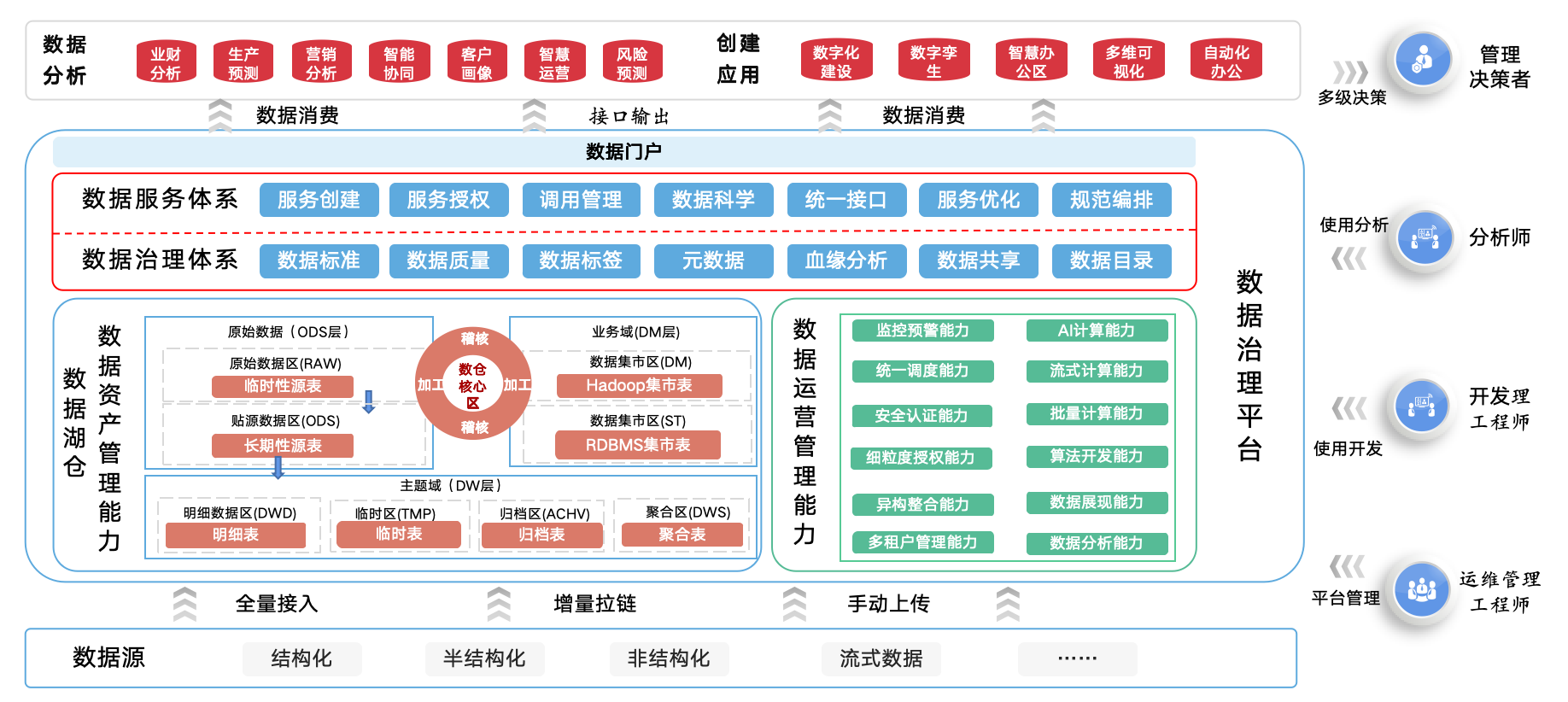 数据治理平台DMP具备流批一体数据采集、多源异构数据整合、数据安全管理和风险防范、数据治理体系技术支撑、数据运营与决策等方面的能力。帮助企业快速搭建数据治理体系,提升业务数据价值