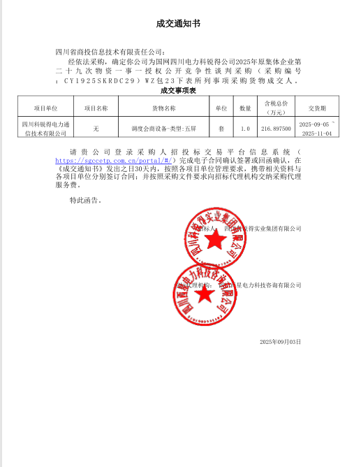 国网四川电力科锐得公司2025年原集体企业第二十九次物资-23包