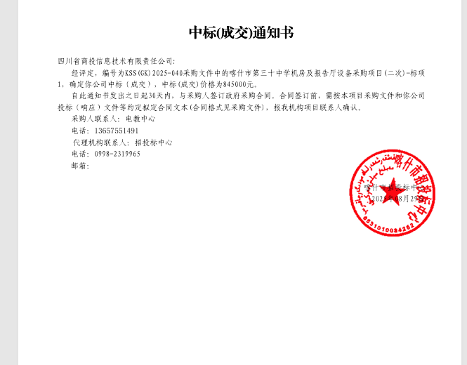 喀什市第三十中学机房及报告厅设备采购项目(二次)