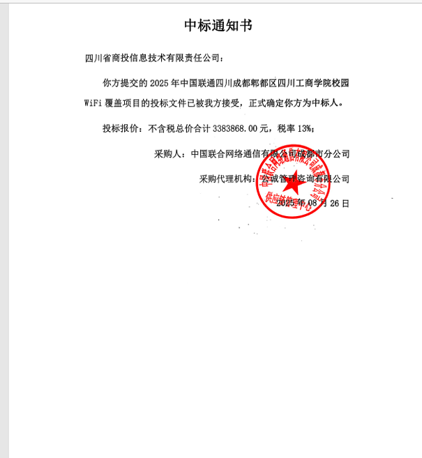 2025年中国联通四川成都郫都区四川工商学院校园WiFi覆盖项目