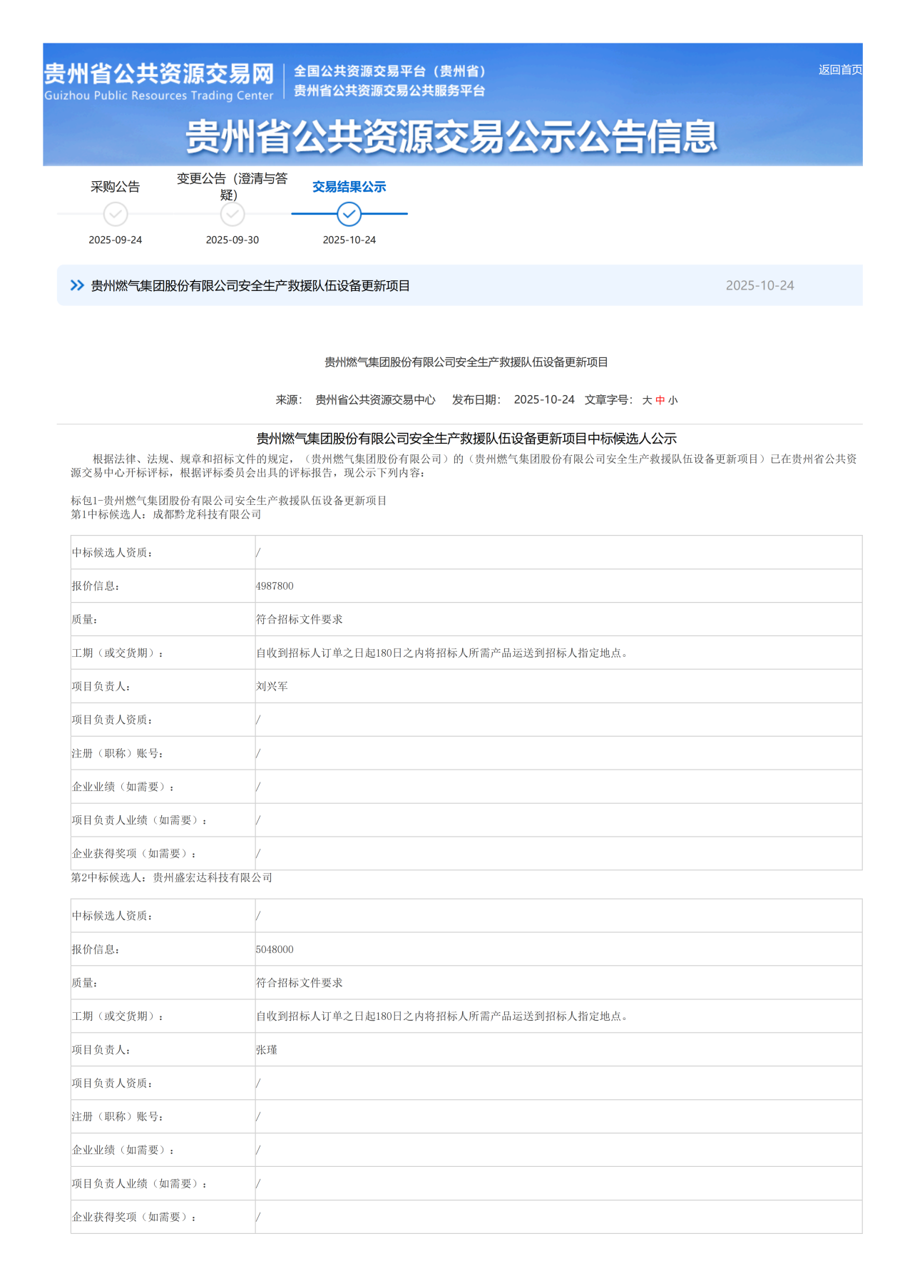贵州燃气集团股份有限公司安全生产救援队伍设备更新项目
